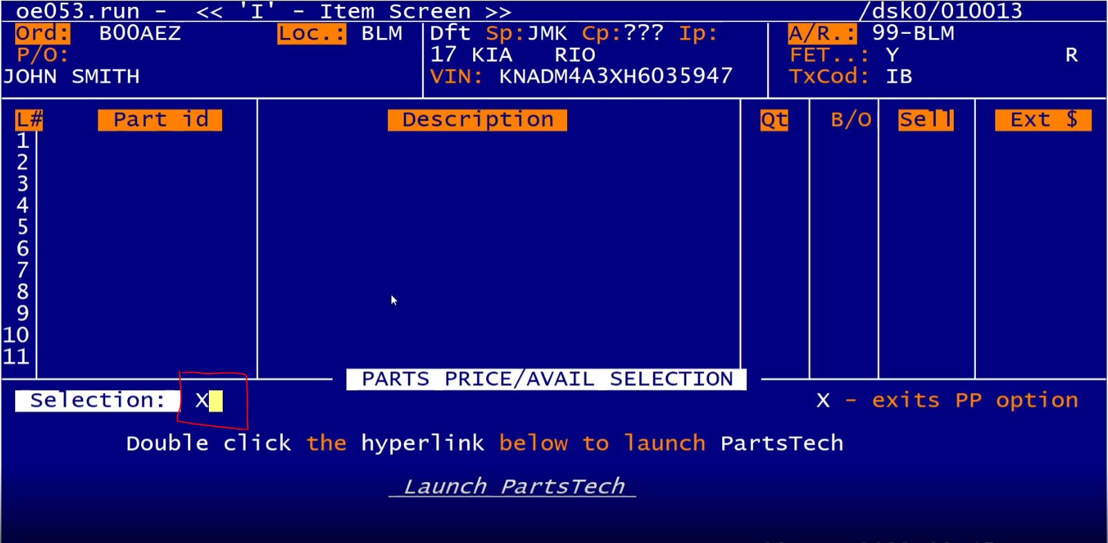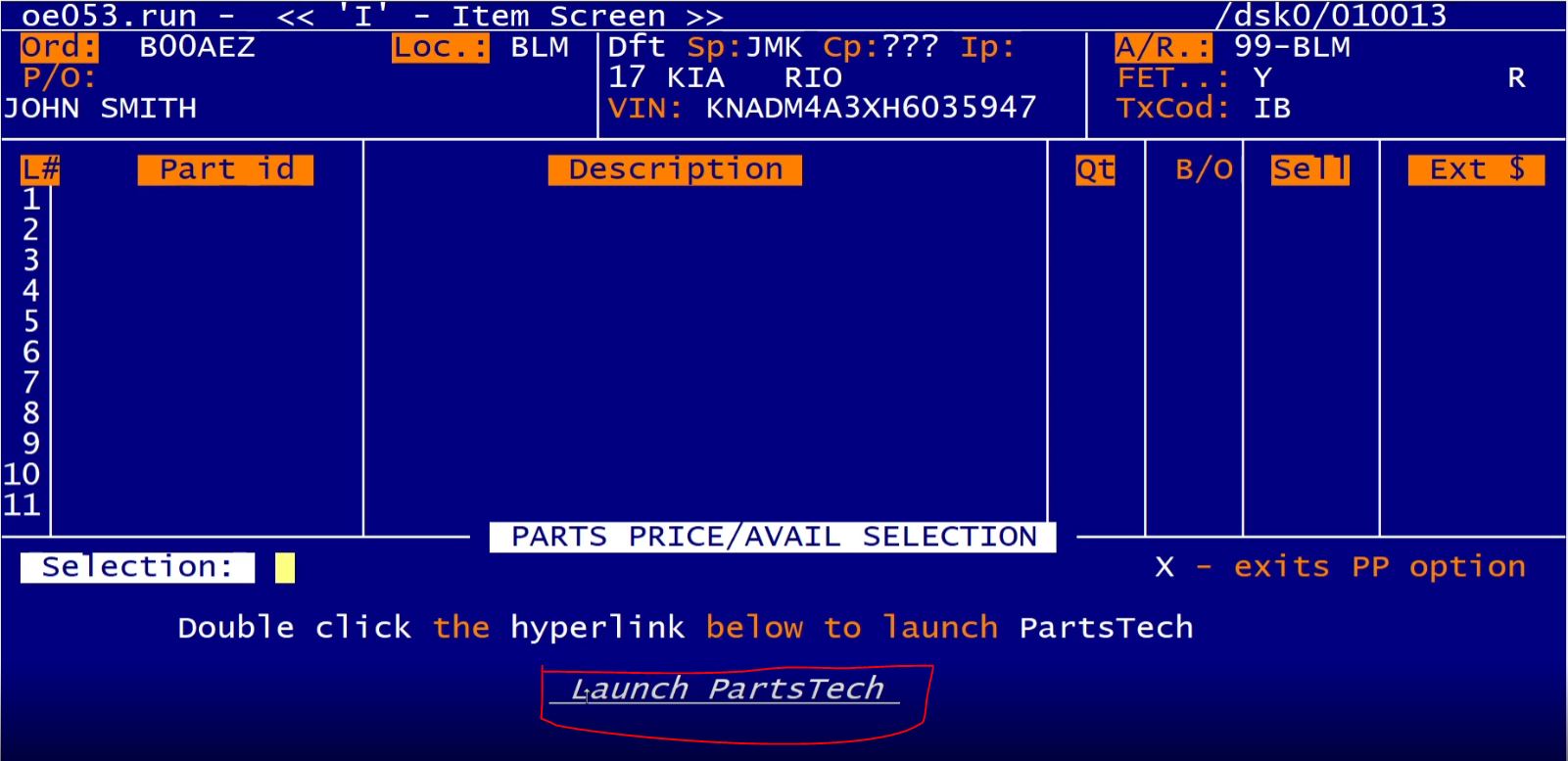 - 2. Use the PP ('Parts Proposal') option - then double click the PartsTech launch hyperlink.