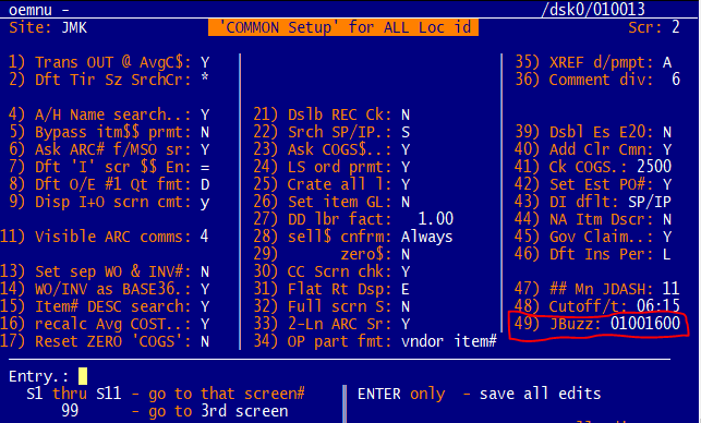 - Set the value by creating a new CM record in O/E opt 28, selection CM, with code value J-BUZZ