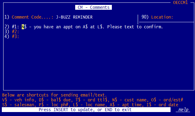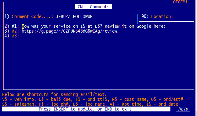 - Allows sales person entry of vehicle specific service comments to track a followup action