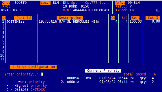 - The priority is configured and later stock the item JOITEM123 gets 4 in stock.