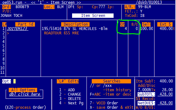 - The order now shows this as the quantity is 20 and the backorder amount is 0.